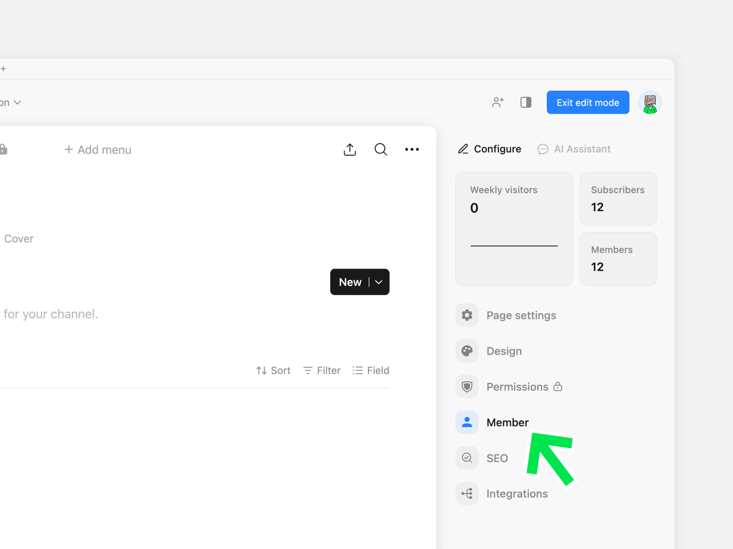 그룹 멤버를 일괄 추가할 페이지 또는 채널로 이동합니다. 화면 오른쪽의