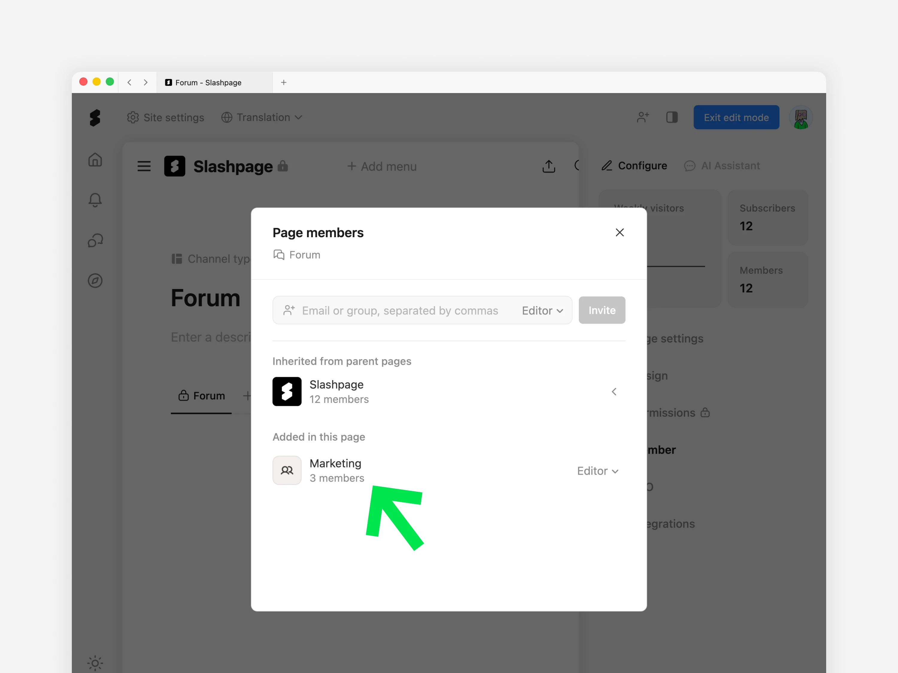 이 페이지/채널에 특정 그룹 멤버들만 접근할 수 있게 하려면?